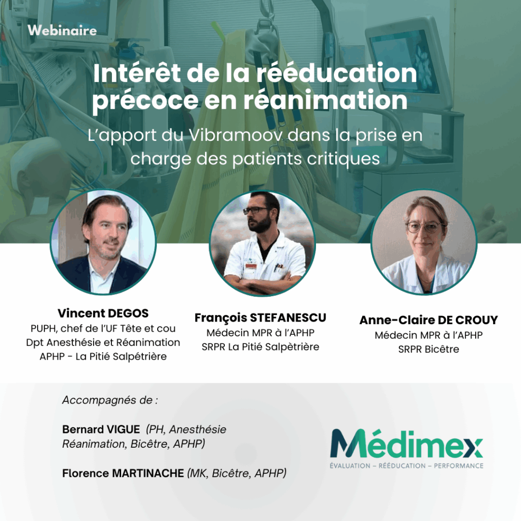 Médimex a eu le plaisir d’organiser un webinaire dédié à la rééducation précoce en réanimation et à l’apport du Vibramoov de TechnoConcept dans la prise en charge des patients critiques.